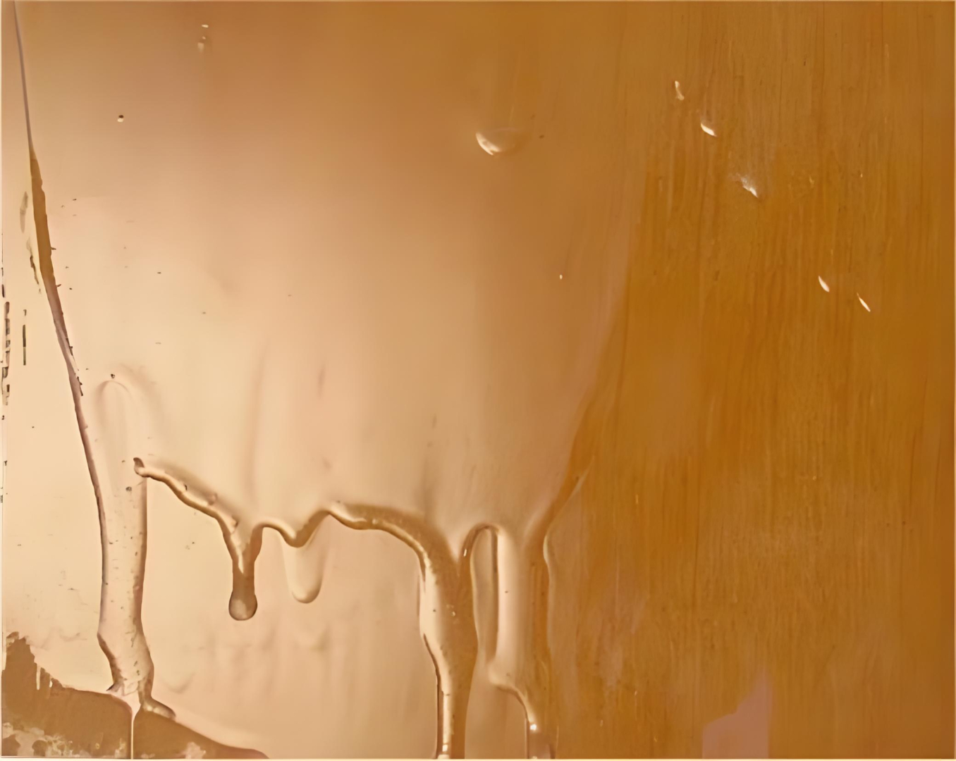 润湿铺展性:若漆液润湿铺展能力差,易出现缩边、波纹等缺陷,导致局部漆膜厚度骤增,不仅波纹突出部位易形成泪痕状流挂,厚膜区域也更易因重力发生流淌。