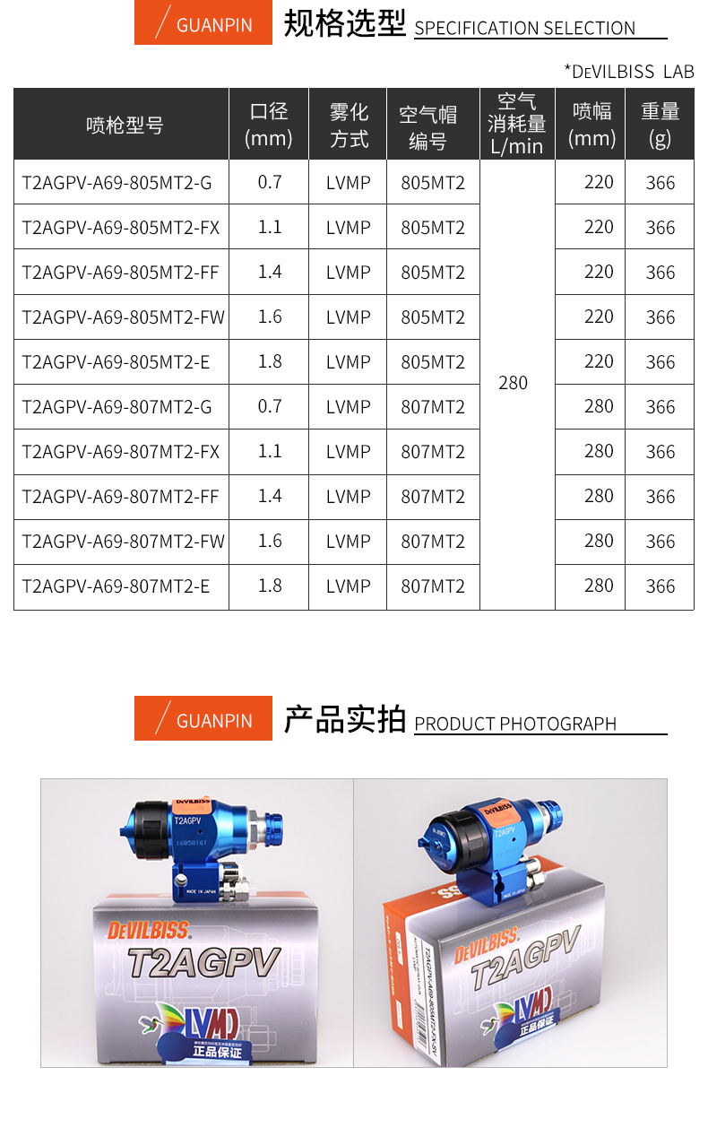 日本DEVILBISS戴维比斯 T-AGB自动喷枪