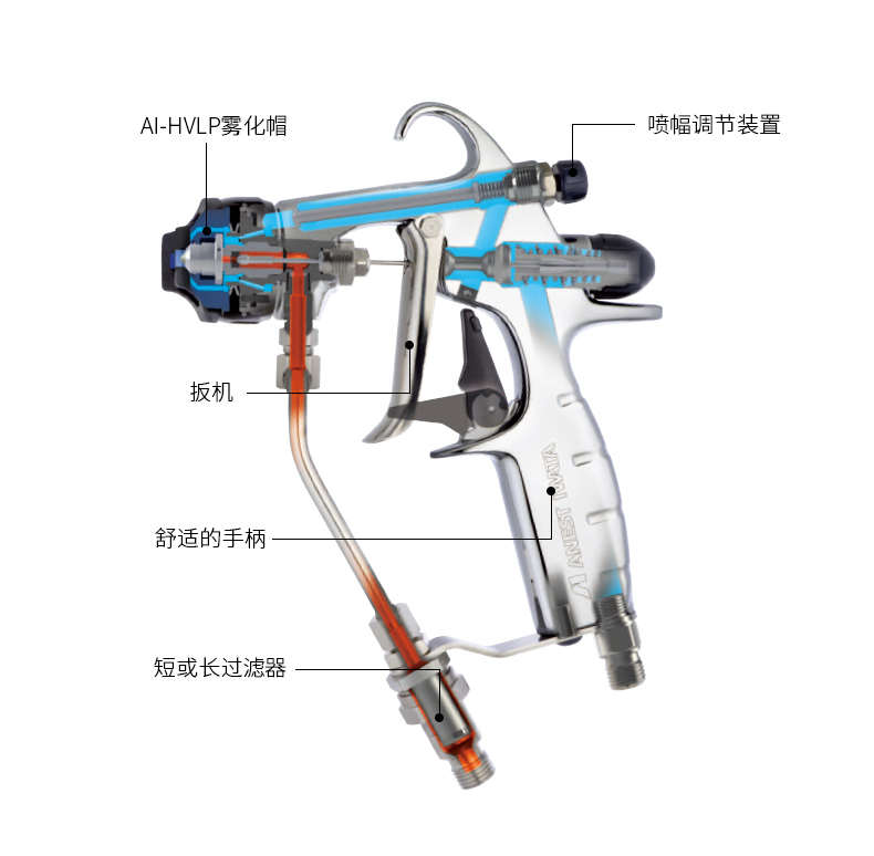 在中压无气喷涂的基础上增加了少量空气雾化,喷涂效率高,比传统空气喷...