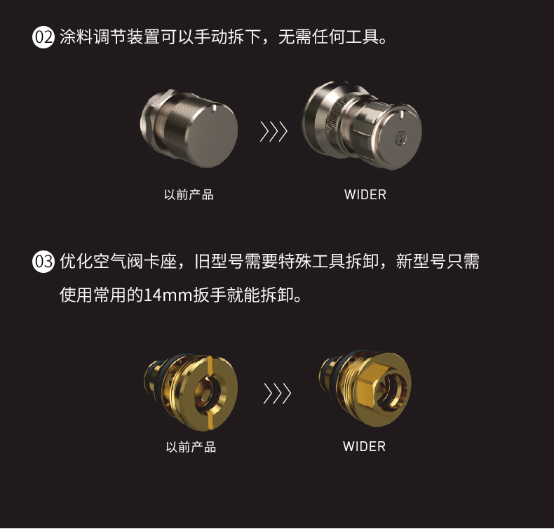 与自动喷涂机、往复喷涂机和喷涂机器人等组合使用,适合批量生产用喷枪...